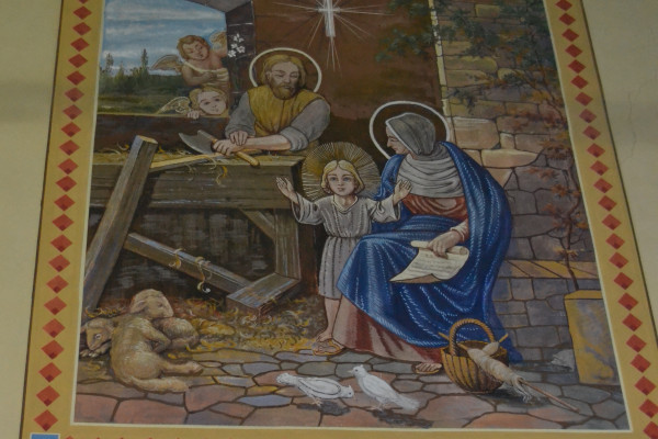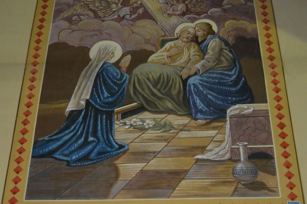 Sv. Josef byl manželem Panny Marie a pěstounem Pána Ježíše. Živil se v Nazaratě jako tesař, avšak o jeho životě toho příliš nevíme. V souvislosti s Ježíšovým veřejným životem se o něm evangelia už nezmiňují. Odtud se vyvozuje tradice, že sv. Josef zemřel v kruhu své rodiny, v přítomnosti Ježíše a své manželky Marie. Právě proto, jako ten, komu se na cestu do věčnosti dostalo té nejvyšší možné útěchy, se stal patronem umírajících. V našem kostele je vyobrazen na vitráži za hlavním oltářem a na dvou nástěnných malbách na bočních stranách lodě kostela.