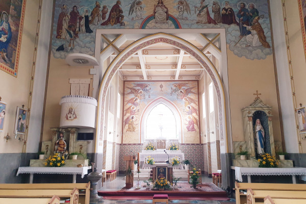 Velmi zajímává je výmalba kostela, zejm. pak figurální obrazy, jejichž autorem je dekorativní malíř kostelů Josef Ježek z Bystřice pod Hostýnem. Najdete na některém z obrazů jeho podpis? Poznáte, kteří naši svatí jsou vyobrazeni, vzdávají úctu Kristu Králi, kolem vítězného oblouku?