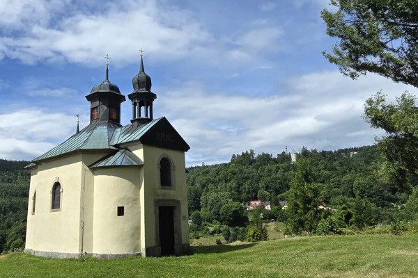 Abertamy, kostel Čtrnácti sv. Pomocníků – 10,9 km