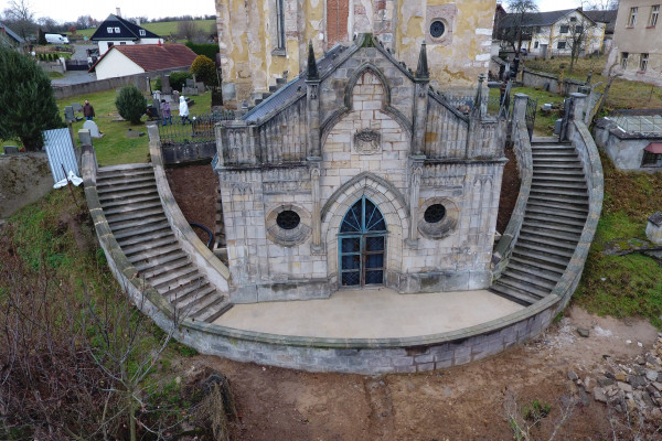 U kostela se nachází velmi zajímavá novogotická hrobka knížat Rohanů, sídlících na zámku v Sychrově, z roku 1836, kterou nechala vybudovat z odkazu kněžna Berta z Rohanu.