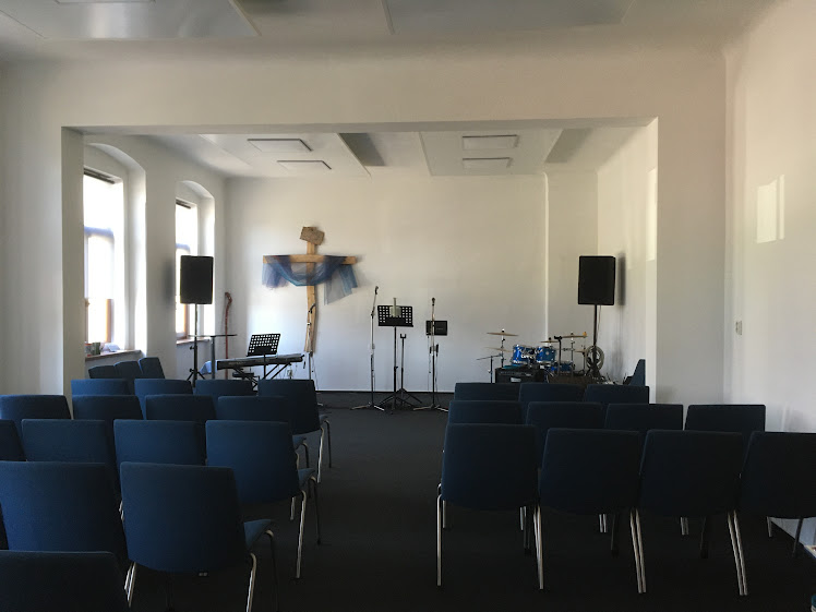 Modlitebna se nachází v přízemí obytného domu v ulici 26. dubna 23.