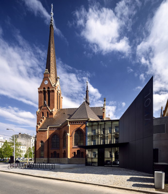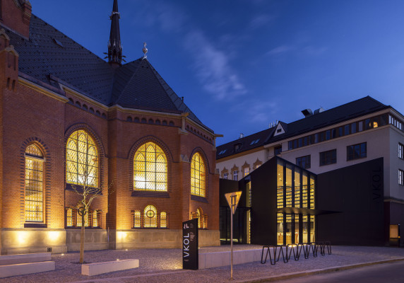 Červený kostel sloužil německým evangelíkům do druhé světové války, poté jej převzali čeští evangelíci a od roku 1961 byl skladem knih Vědecké knihovny v Olomouci. Revitalizace objektu s přístavbou nového foyer trvala dva a půl roku, nové kulturní, komunitní a vzdělávací centrum VKOL bylo otveřeno 17. května 2023.