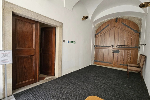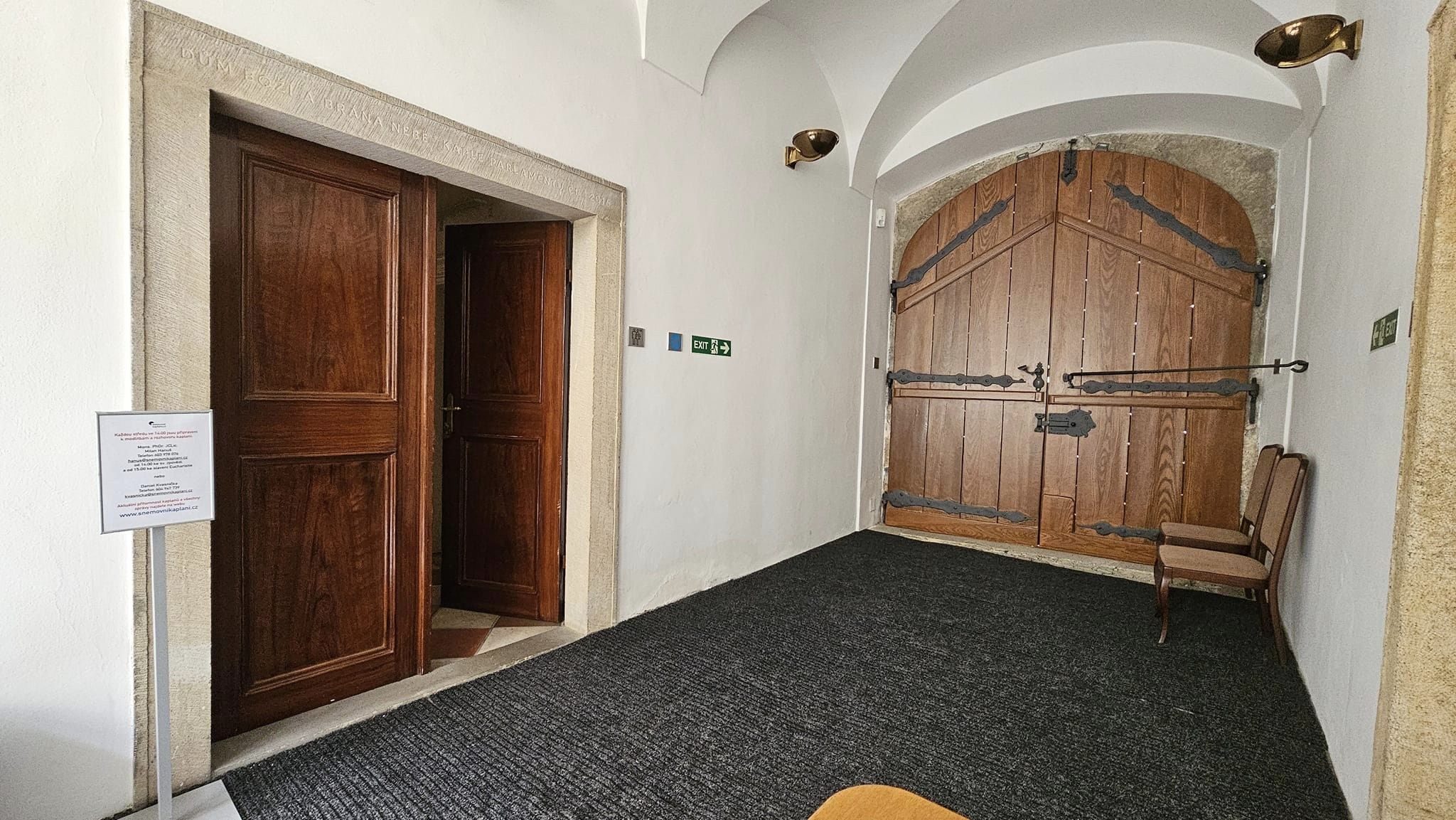 Důležitý je samotný nový vstup do kaple. Je ztvárněn jako výrazný - světelný koridor, kterým každý návštěvník musí projít, vyznačuje práh mezi prostorem profánním a prostorem určeným k duchovnímu setkání. Do stěny vstupního koridoru je vložena malá židovská mezuza, která obsahuje svitek s dvěma biblickými citáty (Dt 6, 4-9 a Dt 11, 13-21).
