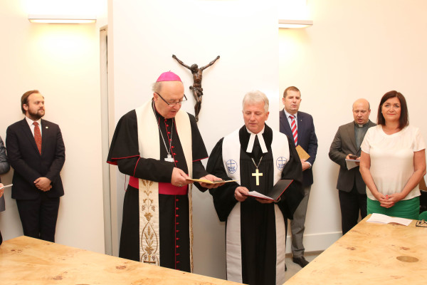 V průběhu slavnostního obřadu v kapli byl do mezuzy ve vchodu umístěn svitek s biblickými citáty, na stůl byla uložena Bible kralická a židovský překlad Starého zákona. Na závěr vrchní zemský rabín Karol Efraim Sidon, předseda Ekumenické rady církví Daniel Fajfr a pražský arcibiskup Dominik kardinál Duka zapálili tři svíčky s textem áronského požehnání.