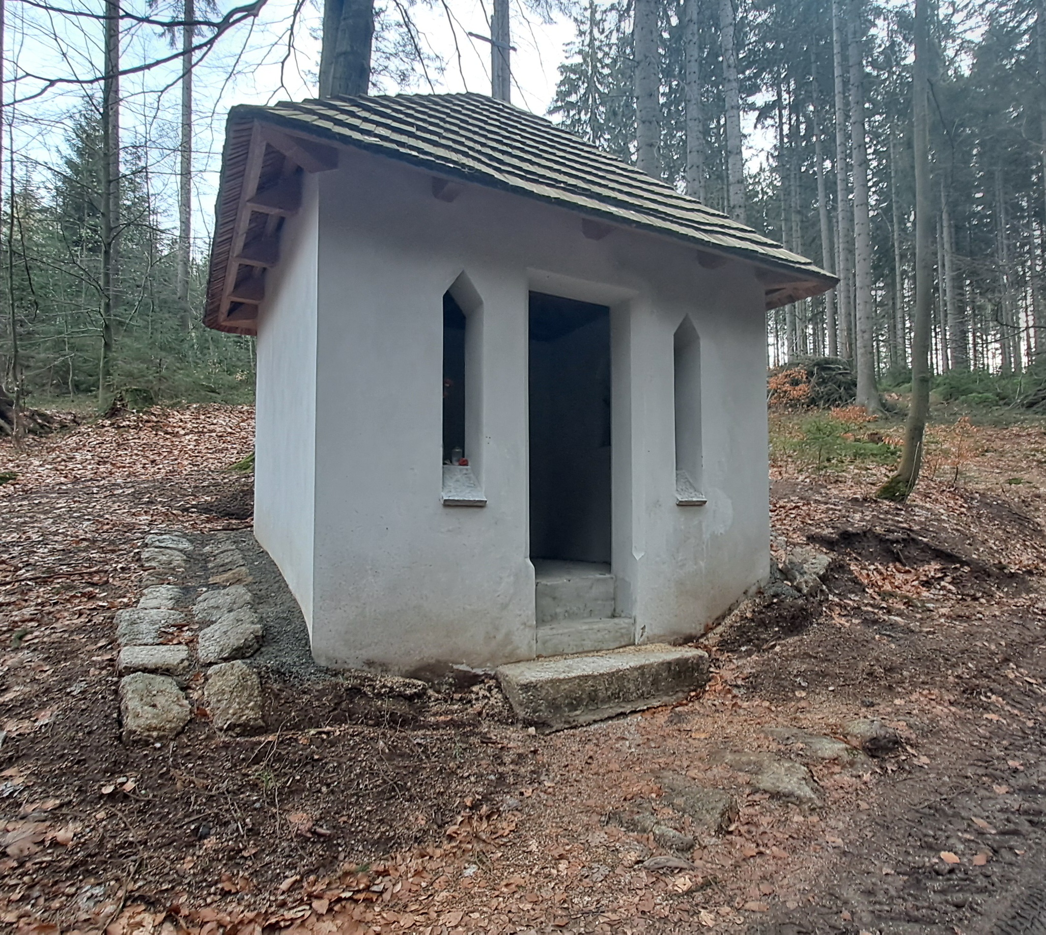 U obnovované Lesní kaple bude výstava návrhů oken a dveří, jež je nutno do kaple ještě zrealizovat; dále zde bude k vidění oltářní sousoší kalvárie, které bylo zachráněno místními z původní kapličky.