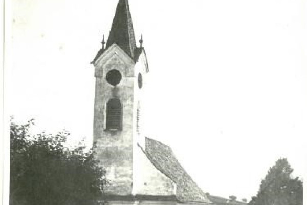 Kostel sv. Jana a Pavla, Pobučí / Čelní pohled na kostel / Autor fotografie: fotografie z kroniky SDH Pobučí