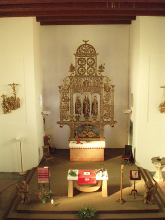 Interiér kostela je zajímavý především přenosným renesančním oltářem a renesančními varhanami, které zrestauroval místní farář Rudolf Valenta. Po stranách jsou dvě zastavení ze známé křížové cesty od Karla Stádníka - na obrázku jsou to dva malé kříže na stěnách. Varhany jsou jedinečné nejen svým stářím, ale i svým laděním. Na tento unikátní nástroj v rámci různých koncertů hrála již celá řada vynikajících varhaníků např.v oblibě je má pan Jaroslav Tůma. Z důvodu výborné akustiky a zajímavého nástroje zde byla vytvořena řada vynikajících nahrávek nejen pro Český rozhlas. Za povšimnutí stojí i varhany na kůru, které postavil sám farář Rudolf Valenta, který též zrestauroval strop kostela a navrhl a postavil nový oltář ze dřeva a italského mramoru. Prostor kostela je využíván hlavně k bohoslužebným účelům,ale občas zde zazní i stará hudba, která otevře srdce i duše všech návštěvníků. Za takovéto místo setkávání buď Bohu chvála...