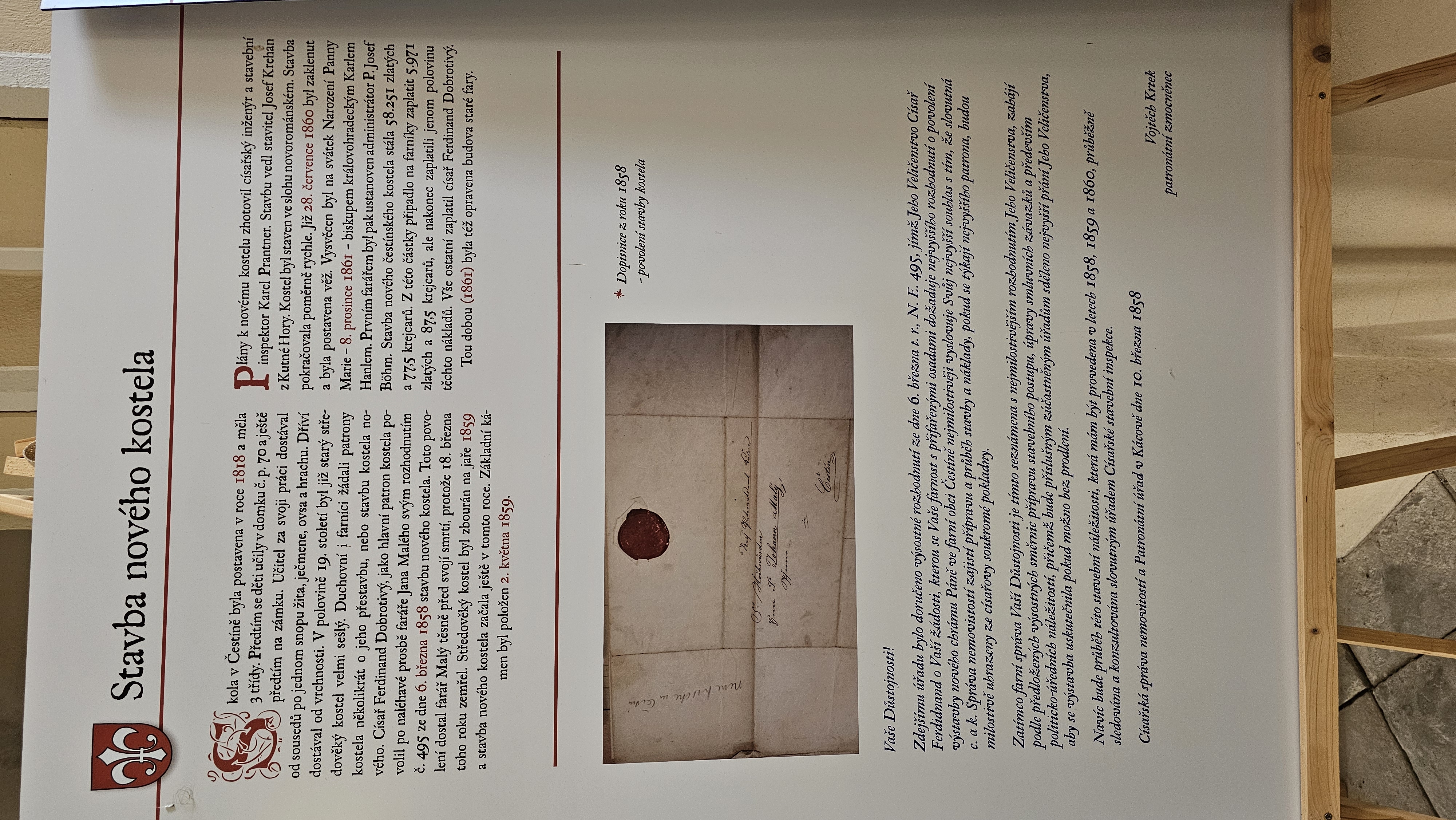 Jedná se o největší kostel v okolí s výbornou akustickou, který byl postaven díky osobnímu daru císaře Ferdinanda Dobrotivého v roce 1861. V současnosti se opravuje fasáda kostela. Interiér je přístupný bez problémů